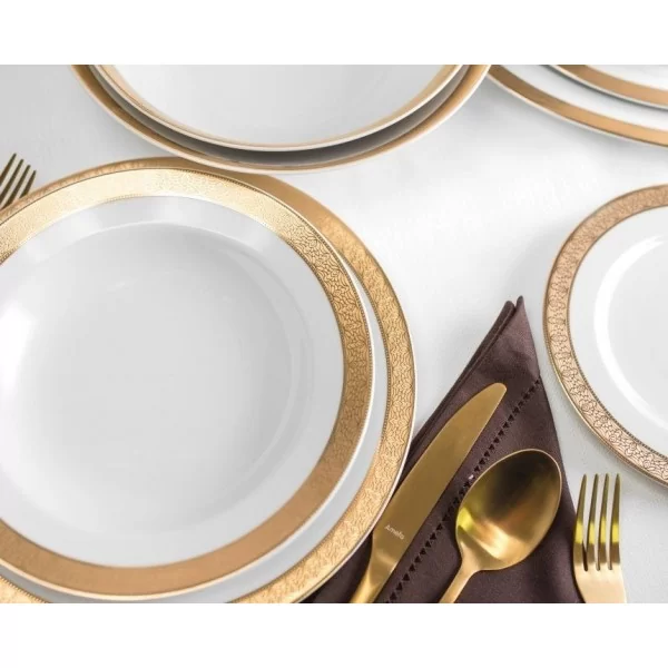 Serwis obiadowy Ćmielów dla 6 osób to komplet porcelany klasy premium. Precyzyjne wykonanie, klasyczna forma oraz starannie dobrane barwy akcentów czynią ten zestaw idealnym wyborem zarówno na codzienne posiłki, jak i eleganckie kolacje.