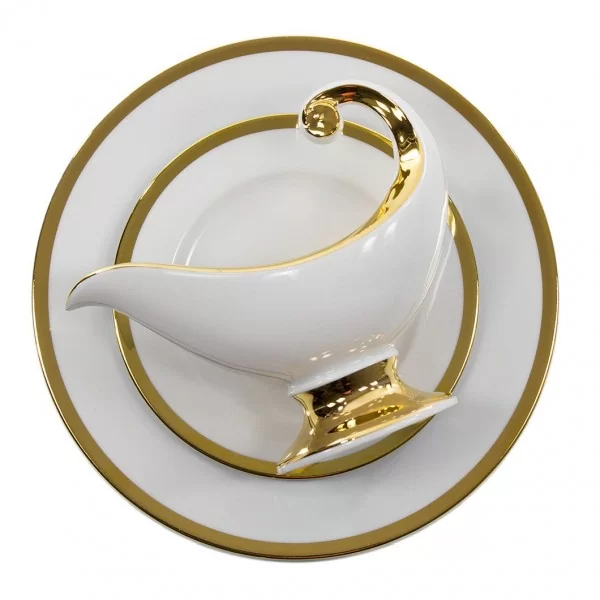 Smukła forma naczyń w serwisie Empire przywodzi na myśl klasyczne rzeźby i antyczne wazy, stając się wzorniczym majstersztykiem. Serwis w dekoracji Królewskie Złoto jest ręcznie zdobiony złotem najwyższej próby. Elementy serwisu nie mogą być myte w zmywarce ani używane w kuchenkach mikrofalowych.