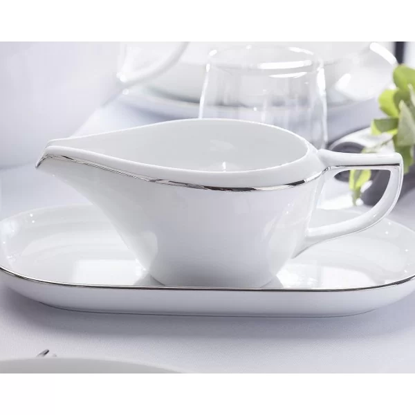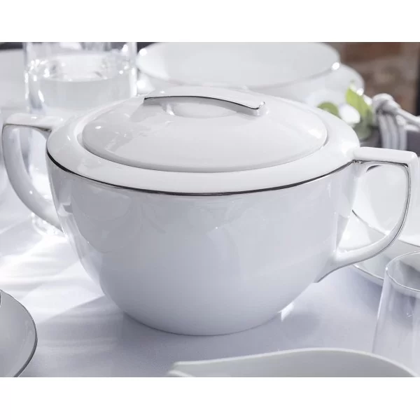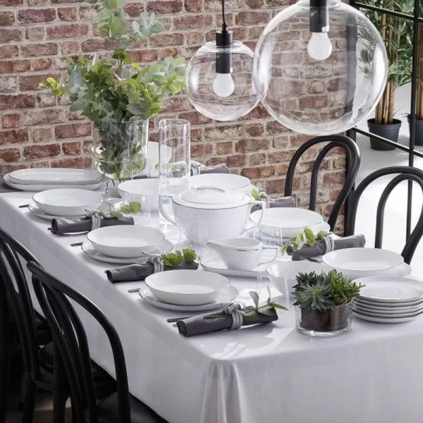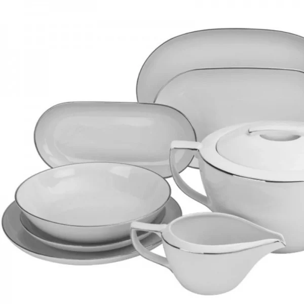 Serwis obiadowy CITY B325 platynowy, 12-osobowy 45 elementów. Z wazą w zestawie.