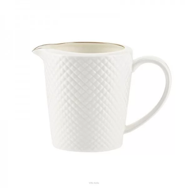 Odkryj niezwykłą elegancję kolekcji Villa Italia w postaci Mlecznika Bari GOLD. Wykonany z delikatnej porcelany kostnej o ciepłym, mlecznym odcieniu bieli, ten dzbanuszek zachwyca klasyczną formą, emanując lekkością i finezją. Jego wyjątkowe zdobienie w postaci strukturalnego, tłoczonego wzoru przypominającego drobne kosteczki nadaje mu niepowtarzalny charakter, który podkreśla ręcznie malowana złota linia biegnąca po obrzeżach.