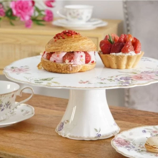Porcelanowa patera na ciasto o średnicy 30 cm.