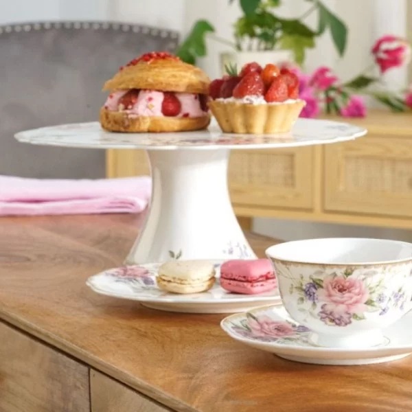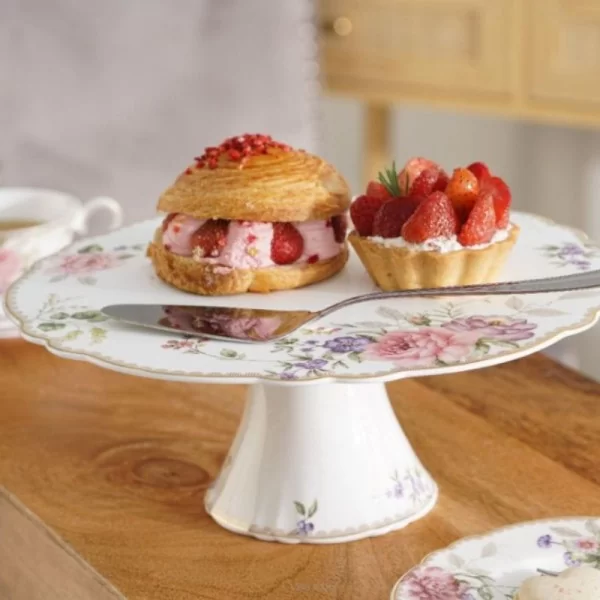 Lekka konstrukcja sprawia, że ta ozdobna patera będzie eleganckim dodatkiem do stołu. Jej płaska powierzchnia idealnie nadaje się do podawania tortów, które można łatwo pokroić i podać za pomocą specjalnej łopatki.