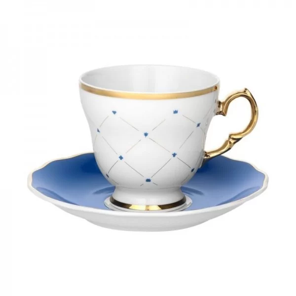 Spodek z kolekcji Alaska Circus urzeka głębokim odcieniem niebieskiego, idealnie komponując się z filiżanką kawową. Ręcznie malowane złote wykończenia dodają mu elegancji. Średnica spodka wynosi 14 cm.