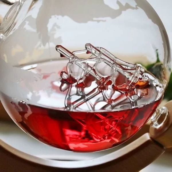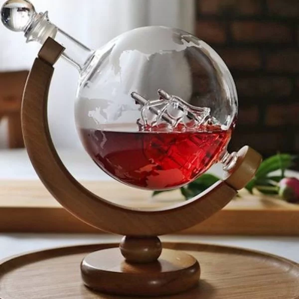 Karafka w kształcie globusa to nie tylko elegancki dodatek do wnętrza, ale także doskonały prezent dla miłośników tego wyjątkowego trunku. Wnętrze butelki zdobi "zatopiony" żaglowiec, co nadaje jej niepowtarzalny charakter.