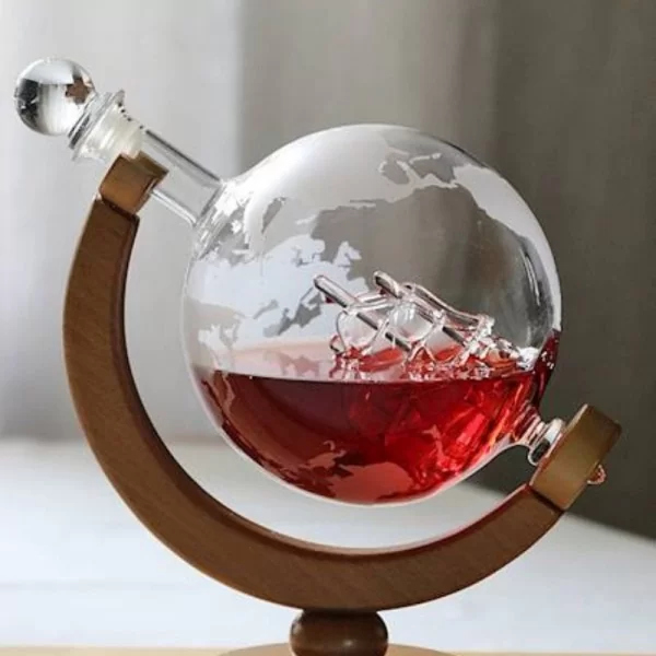 Piękna karafka w kształcie globusa z wygrawerowaną mapą świata, przyciągnie wzrok każdego gościa w domu lub biurze.