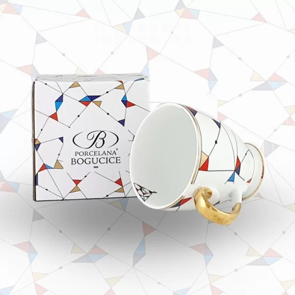 Zapraszamy do odkrycia wyjątkowej kolekcji kubków z porcelany Bogucice, które zachwycają swoim niepowtarzalnym designem. Każdy kubek z serii Arlekin jest ozdobiony złotymi elementami oraz kolorowymi rombami, co nadaje mu elegancji i luksusowego charakteru.