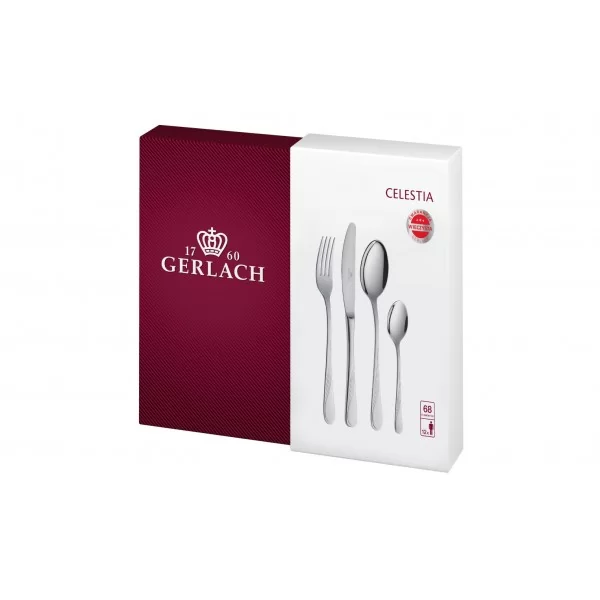 Dzięki najwyższej jakości stali nierdzewnej 18/10 sztućce Celestia odporne są na działanie korozji oraz nadają się do mycia w zmywarce . Firma Gerlach udziela wieczystej gwarancji na wszystkie sztućce Celestia.