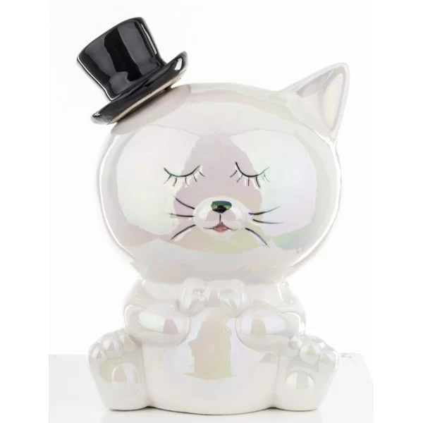 Skarbonka kot to bardzo ładny i gustowny prezent, który zachwyci nie tylko dzieci, ale także dorosłych. Gustowna i zabawna dekoracja, która będzie ładnie wyróżniać się na półce lub biurku w pokoju dziecięcym.