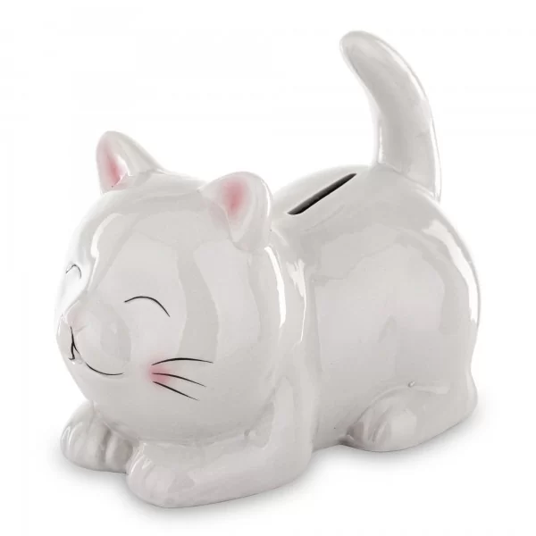 Skarbonka kot to bardzo ładny i gustowny prezent, który zachwyci nie tylko dzieci, ale także dorosłych. Gustowna i zabawna dekoracja, która będzie ładnie wyróżniać się na półce lub biurku w pokoju dziecięcym.