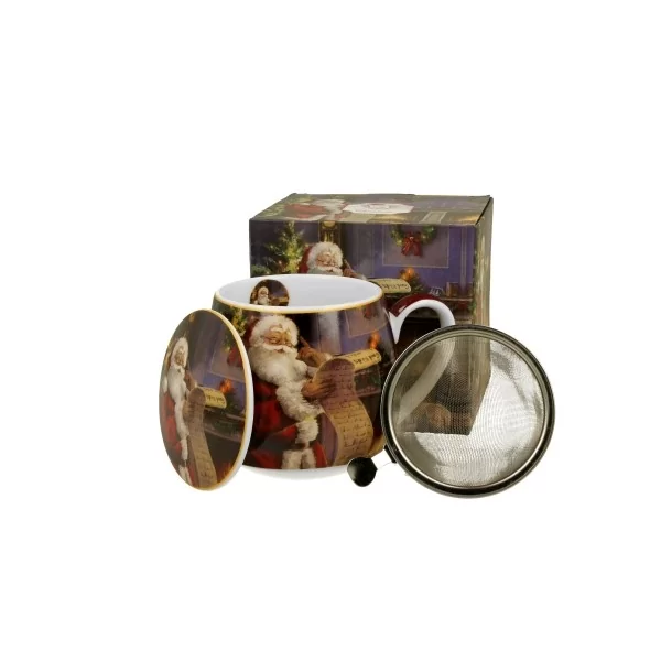 Kubek baryłka 430 ml z zaparzaczem i pokrywką SANTA LETTER wchodzący w skład serii Świątecznej, wykonany z porcelany New Bone China, charakteryzującej się elegancką i naturalną kremowo - białą barwą z delikatnym połyskiem, a także wyjątkową wytrzymałością.