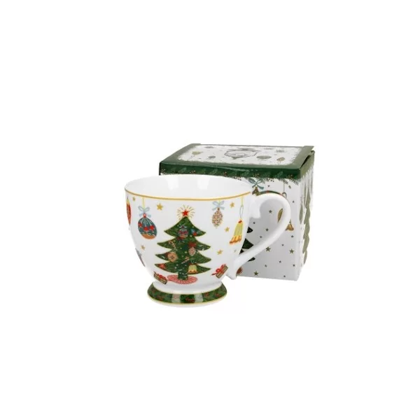 Kubek na stopce AROUND CHRISTMAS TREE wchodzący w skład serii Świątecznej, wykonany z porcelany New Bone China, charakteryzującej się elegancką i naturalną kremowo - białą barwą z delikatnym połyskiem, a także wyjątkową wytrzymałością.