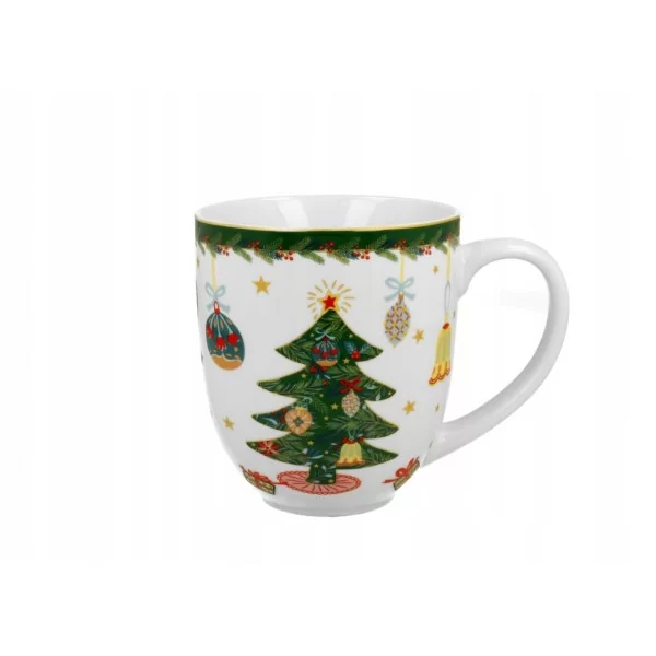 Kubek z kokardą AROUND CHRISTMAS TREE wchodzący w skład serii Świątecznej, wykonany z porcelany New Bone China, charakteryzującej się elegancką i naturalną kremowo - białą barwą z delikatnym połyskiem, a także wyjątkową wytrzymałością.