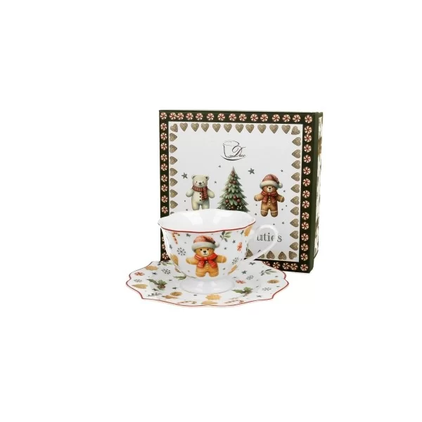 Filiżanka ze spodkiem CHRISTMAS CUTIES wchodząca w skład serii Świątecznej, wykonana z porcelany New Bone China, charakteryzującej się elegancką i naturalną kremowo - białą barwą z delikatnym połyskiem, a także wyjątkową wytrzymałością.