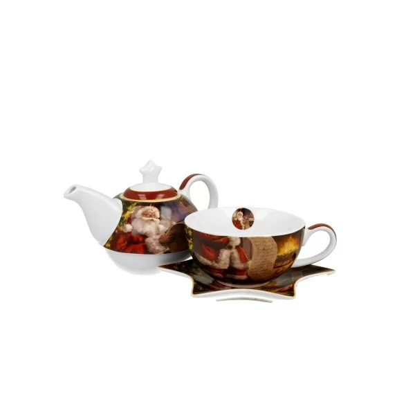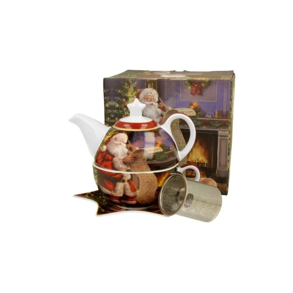 Zestaw dodatkowo jest wyposażony w metalowy filtr idealny do zaparzania ulubionej herbaty czy aromatycznych ziół. Dodatkowego uroku dodają świąteczne akcenty - spodek w kształcie gwiazdy oraz taki sam uchwyt pokrywki.
