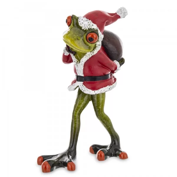 Zabawna figurka żaby w świątecznym wydaniu. Żabę wykonano dbając o najwyższą jakość wykończenia. Świetny pomysł na prezent na wiele różnych okazji dla rodziny czy przyjaciół. Żaba to symbol szczęścia oraz pieniędzy.