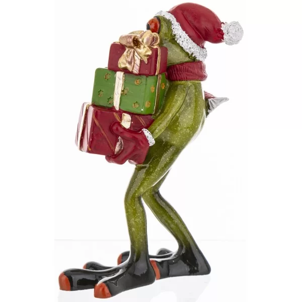 Zabawna figurka żaby w świątecznym wydaniu. Żabę wykonano dbając o najwyższą jakość wykończenia. Świetny pomysł na prezent na wiele różnych okazji dla rodziny czy przyjaciół. Żaba to symbol szczęścia oraz pieniędzy.