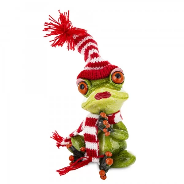 Zabawna figurka żaby w świątecznym wydaniu. Żabę wykonano dbając o najwyższą jakość wykończenia. Świetny pomysł na prezent na wiele różnych okazji dla rodziny czy przyjaciół. Żaba to symbol szczęścia oraz pieniędzy.