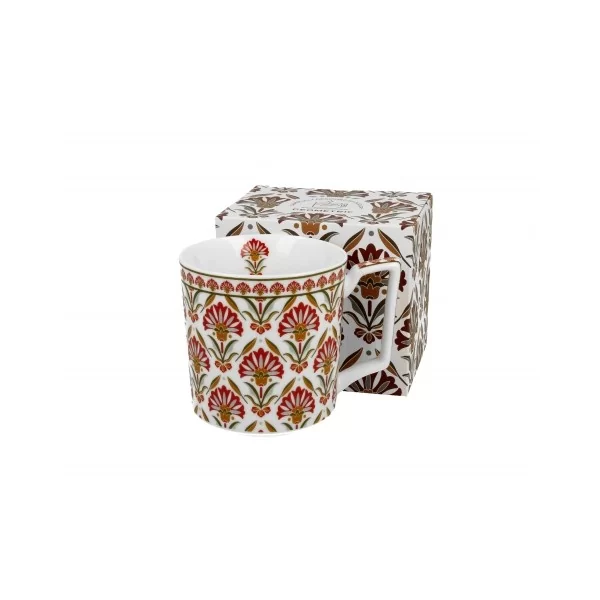 Linia zdobiona motywem folkowych kwiatów ułożonych symetrycznie, w wielokrotnie powtarzających się sekwencjach. Wyrazisty bordowy kolor pięknie komponuje się z delikatnymi szarościami i złoceniami. Harmonijna i stonowana estetyka nadaje kolekcji eleganckiego i stylowego wyglądu. Dzięki symetrycznej budowie wzoru, produkty z jego zastosowaniem wyglądają gustownie i estetycznie, przykuwając uwagę i dodając im wyjątkowego charakteru.