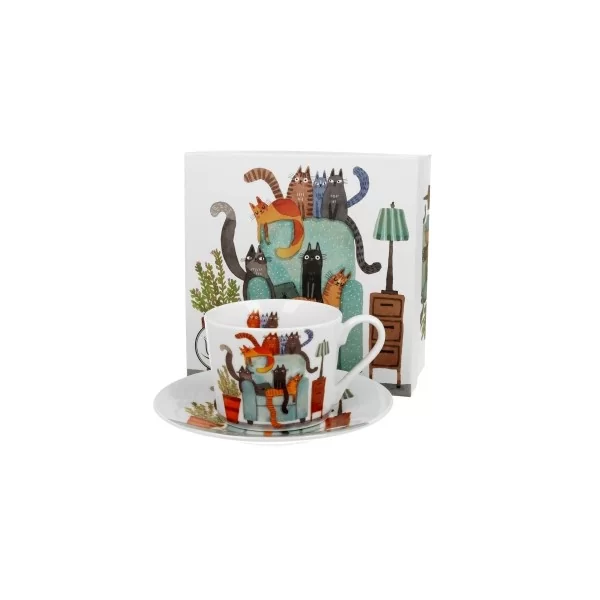 Filiżanka ze spodkiem elegant Koci Świat - Koty na Fotelu 230 ml