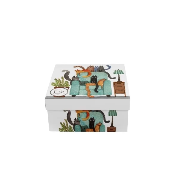 Linia zdobiona motywem wielokolorowych, puszystych i okrąglutkich domowych kotów oddających się relaksowi na ogromnym fotelu. Soczyste kolory w połączeniu z filuternym klimatem tworzą udaną kompozycję.