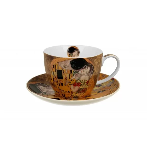 Porcelanowa filiżanka Jumbo ze spodkiem z serii THE KISS by Gustav Klimt wchodząca w skład serii Art Gallery.