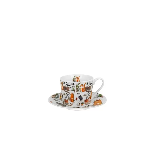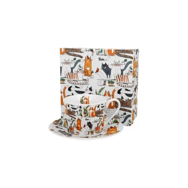 Filiżanka ze spodkiem elegant Koci Świat - Leniwe Koty 230 ml