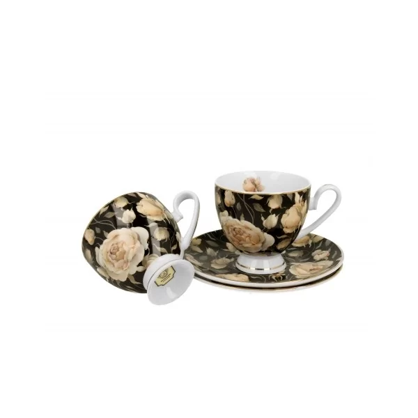 Komplet 2 filiżanek ze spodkami English Roses Black 220 ml