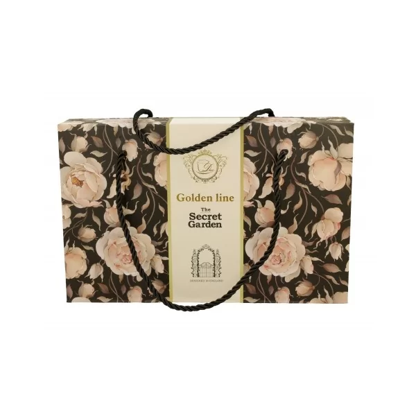 Linia zdobiona motywem pędów angielskich róż w jasnych pastelowych kolorach na wyrazistym czarnym tle. Stonowana kolorystyka w połączeniu ze złotym wykończeniem nadaje kolekcji wyjątkowej elegancji.