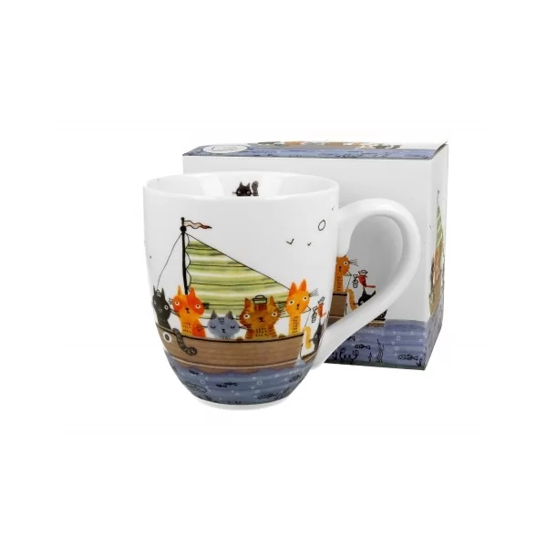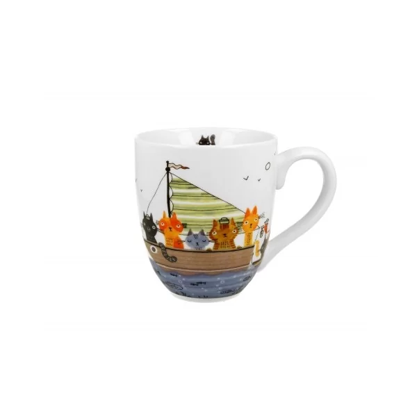 Kubek 1000 ml Koci Świat MARYNARZE wchodzący w skład linii Animals, wykonany z porcelany New Bone China, charakteryzującej się elegancką i naturalną kremowo - białą barwą z delikatnym połyskiem a także wyjątkową wytrzymałością przy zachowaniu lekkości i delikatności.