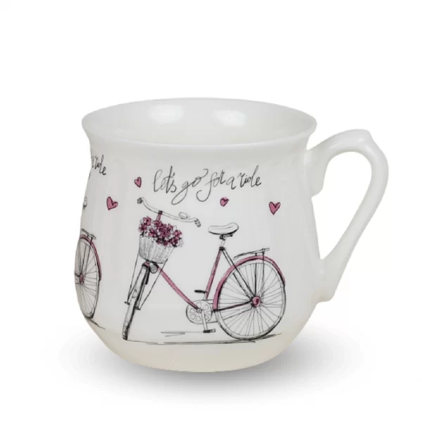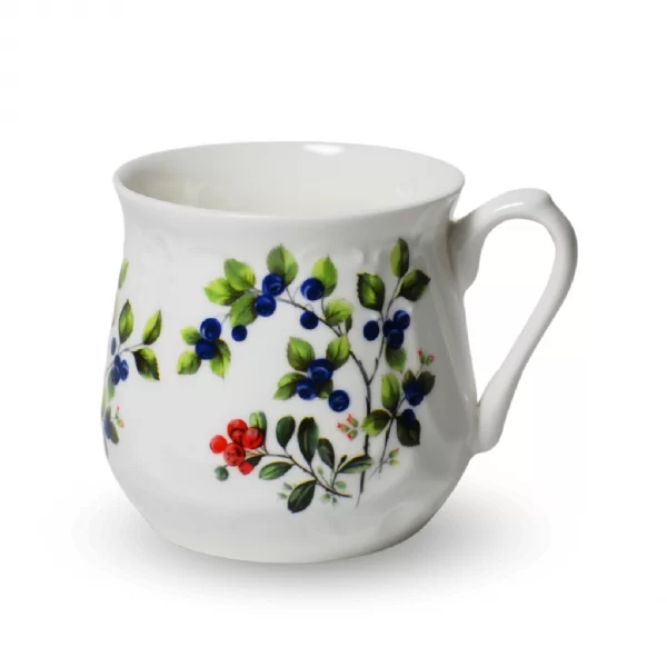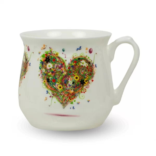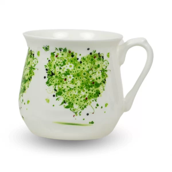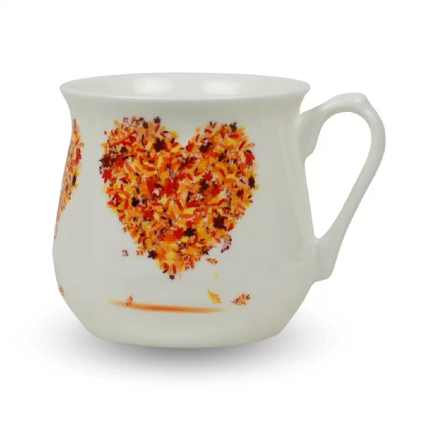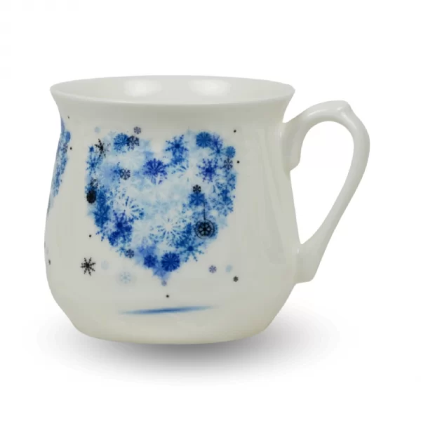 Na ściankach tego kubka umieszczona jest kalkomania ceramiczna, która została wypalona w wysokiej temperaturze, co gwarantuje jej trwałość. Ta dekoracja nadaje kubkom niezwykłego uroku i elegancji. Metodą serigrafii, którą wytwarzamy naszą kalkomanię, uzyskujemy powtarzalny wzór dekoracji nakładany ręcznie przez pracownika na porcelanowy wyrób.