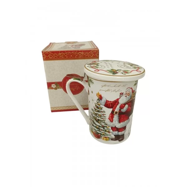Kubek ze świątecznym motywem, podkładką i porcelanową łyżeczką o pojemności 250 ml.