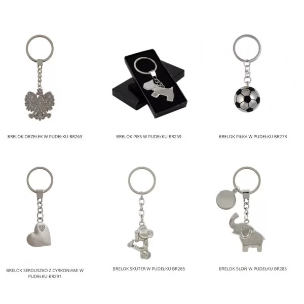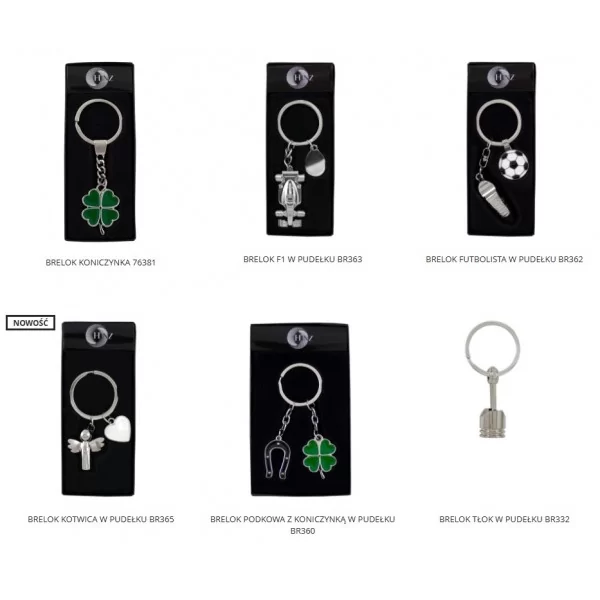 Brelok pakowany w ozdobne, czarne, flokowane wewnątrz pudełeczko.