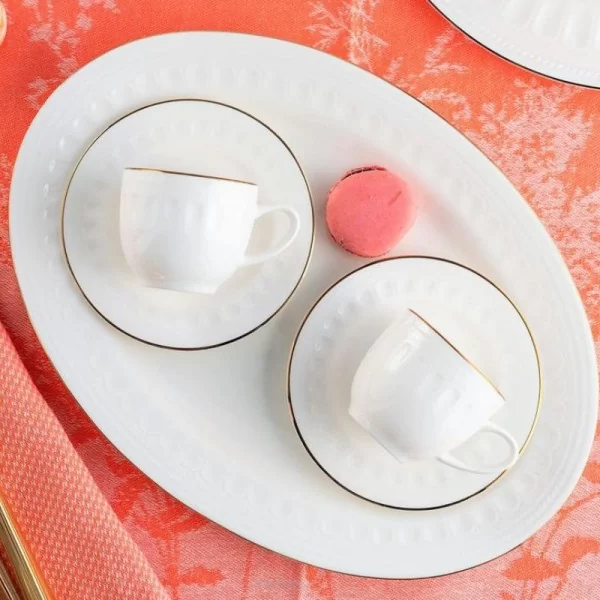 Mesyna Gold to niezwykle elegancka kolekcja, wykonana z cienkiej i delikatnej porcelany kostnej, w ciepłym, mlecznym odcieniu bieli. Zachwyca swoją klasyczną formą, pełną lekkości i finezji.