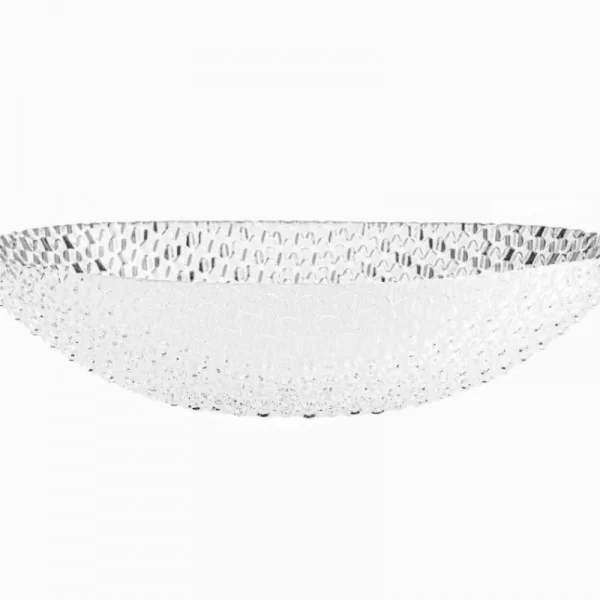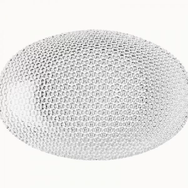 Misa szklana owalna o wymiarach 32 x 22 cm, wykonana z przezroczystego szkła o wypukłej, geometrycznej strukturze. Wzór sprawia, że salaterka przepięknie błyszczy na oświetlonym stole.