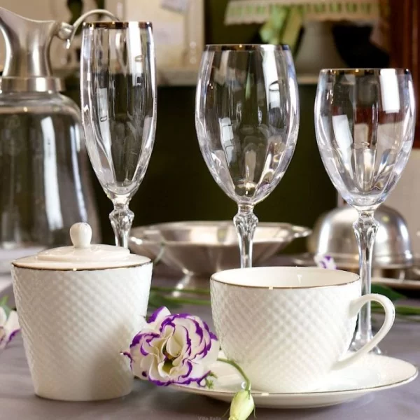 Serwis kawowy cała zastawa Bari Platin świetnie sprawdzi się zarówno w klasycznych jak i nowoczesnych wnętrzach, a każdemu spotkaniu przy stole nada niezwykłą oprawę. Porcelana odpowiednia do okazjonalnego mycia w zmywarce, w temperaturze poniżej 50°C, z użyciem łagodnych środków myjących (zalecamy żele do zmywarek).