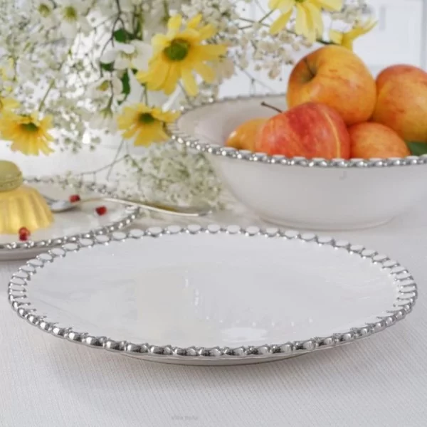 Dekoracyjny talerz do ciasta wykonany z ceramiki. Idealny na ciasto lub owoce. Talerz deserowy o średnicy 27 cm pochodzi z kolekcji CHANTAL obejmującej naczynia dekoracyjne, które wyróżniają się elegancją i oryginalnym wzornictwem.