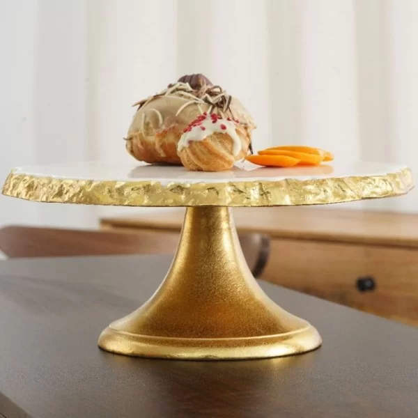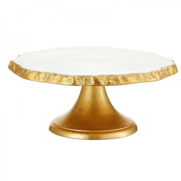 Ta niezwykła patera jest doskonała na ciasto lub tort. Biało-złota kolorystyka sprawia, że patera będzie pasowała do eleganckiej zastawy stołowej w podobnych barwach.
