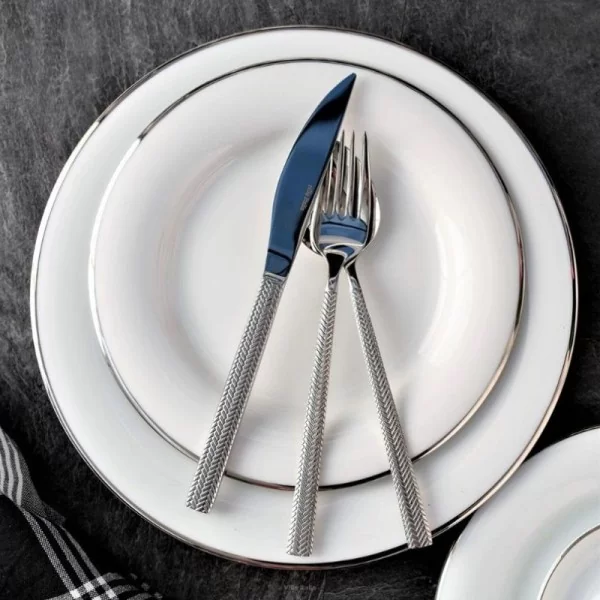 Duży zestaw sztućców o nowoczesnym wzornictwie. Sztućce wykonane są z najwyższej jakości stali nierdzewnej typu 18/10 - trwałej, o pięknym połysku, odpornej na korozję.