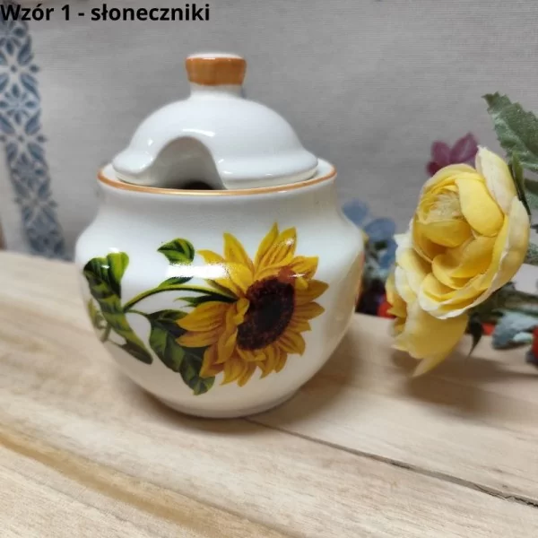 Cukiernica do przechowywania produktów sypkich typu cukier wykonana z ceramiki.