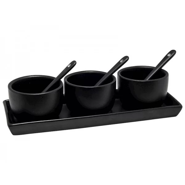 Świetne rozwiązanie dla każdego miłośnika sosów i dipów – nasz ceramiczny zestaw to idealne akcesorium do serwowania. Składa się z trzech miseczek umieszczonych na eleganckiej ceramicznej podstawie, która ułatwia serwowanie i prezentację.