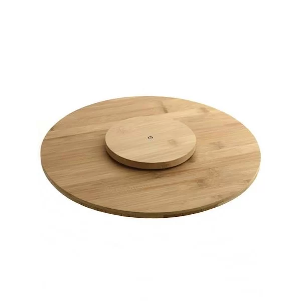 Charakterystyka: Obrotowy talerz idealny do serwowania serów, wędlin, deserów, lub pizzy. Wykonany z drewna bambusowego, łatwy w utrzymaniu czystości.