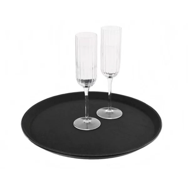 Taca wykonana z tworzywa sztucznego, pokryta materiałem antypoślizgowym. Posiada rant, który zapobiega rozlewaniu się napojów. Jest lekka, a jednocześnie sztywna, wytrzymała i łatwa w utrzymaniu czystości.