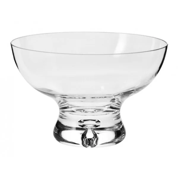 Bardzo oryginalna patera do serwowania owoców, deserów oraz wielu innych przekąsek, o średnicy 23cm. Salaterka na szerokiej nodze ozdobionej otwartym pęcherzem powietrza. Patera została wykonana tradycyjną metodą ręczną, z najwyższej jakości szkła Crystalline.