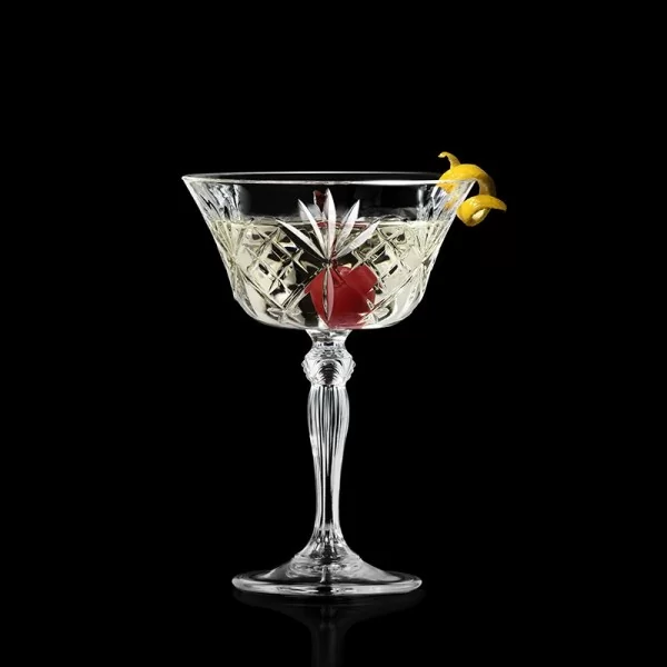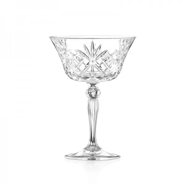 Piękne i funkcjonalne, Wykonane z najwyższej jakości szkła kryształowego, Ekologiczne szkło o doskonałej przejrzystości, Piękny melodyjny szlif dodający elegancji, Wyjątkowa wszechstronność i wygoda użytkowania, Charakterystyczny otwarty kształt i szeroka krawędź, Idealne do serwowania szmpana, drinków, takich jak margarita czy daiquiri, Możliwość efektywnego ozdobienia kieliszka np. cukrem lub solą podkreślając prezentację i smak, Unikalny design, stylowa dekoracja i elegancka forma nadająca wyjątkowego charakteru każdemu toastowi