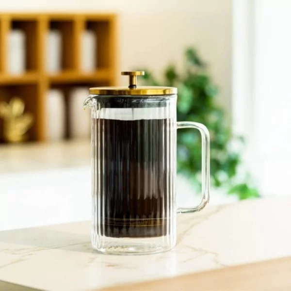 Zaparzacz wykonany z najwyższej jakości szkła borokrzemowego nie tylko pięknie się prezentuje, ale także jest wyjątkowo trwały i odporny na nagłe zmiany temperatury. Ścianki z podwójnego szkła utrzymują optymalną temperaturę napoju na dłużej, podczas gdy duże, wygodne ucho zapewnia komfort podczas użytkowania.