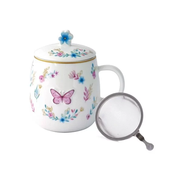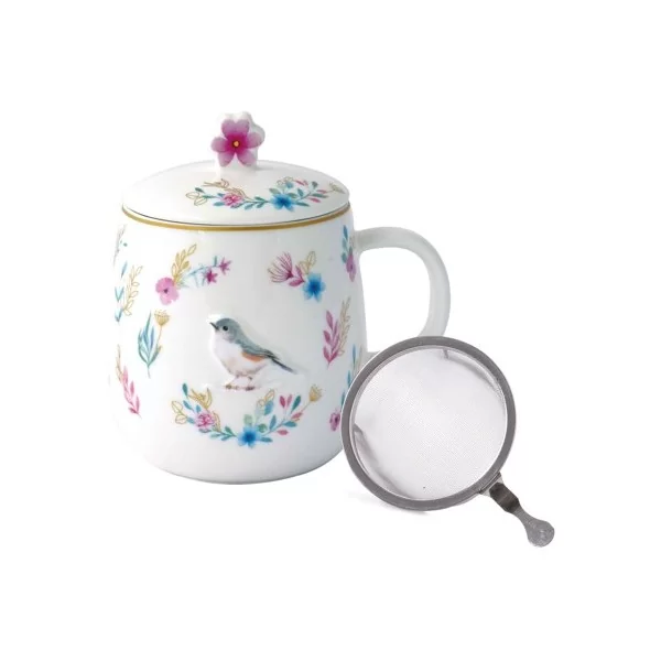 Porcelanowy kubek z zaparzaczem o pojemności 450 ml.