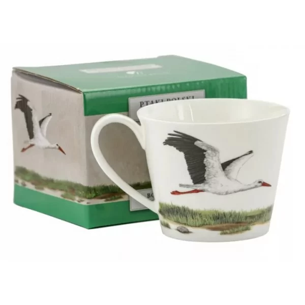 Duży, porcelanowy kubek z serii Ptasi świat Bociany wchodzący w skład kolekcji Animals - Ptaki. Pojemność kubka 400 ml. Wykonany jest z porcelany New Bone. Kolekcja zdobiona motywem jednego z najbardziej popularnych polskich ptaków - bocianów, które niezmiennie symbolizują nadejście wiosny.