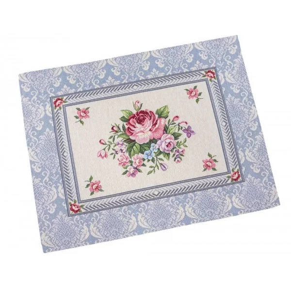 Gobelinowa podkładka na stół w rozmiarze 37x49 cm. Serwetka dekoracyjna z motywem róż. Tkanina jest wysokiej jakości - solidna i gruba. Wzór jest tkany, nie jest to żaden nadruk czy naszywka.
