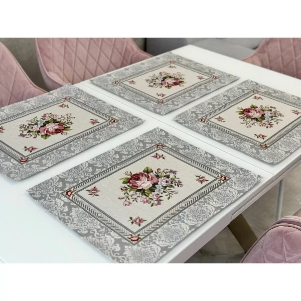 Serwetki wykonane są z żakardu gobelinowego, tkaniny hiszpańskiej, w skład której wchodzi 75% poliestru, 22% bawełny i 3% poliakrylu. Materiał ma gramaturę 420g/m2, pilling 4, odporność na światło 4. Serwetka to wyjątkowa ozdoba każdego zarówno tradycyjnego jak i nowoczesnego wnętrza.