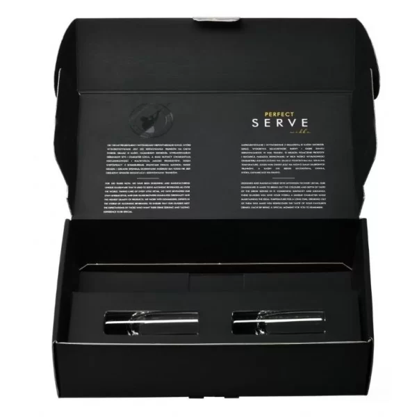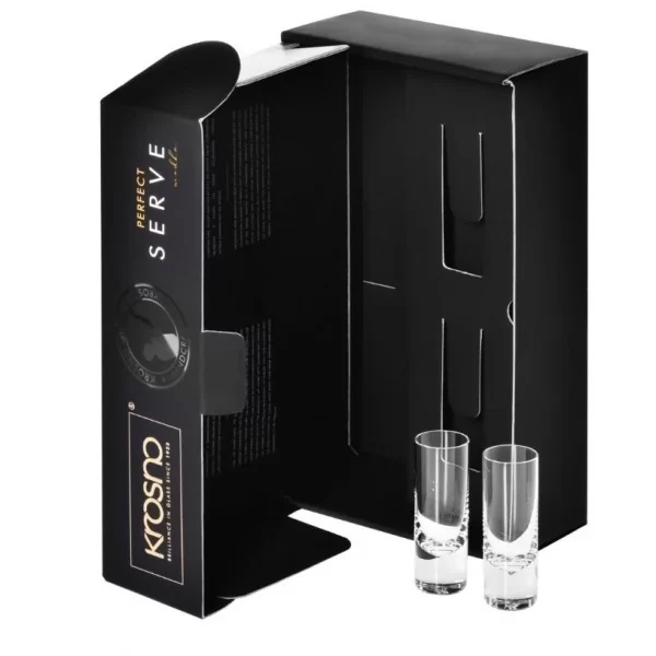 Perfect Serve od KROSNO to innowacyjna kolekcja prezentowa. W skład kompletu wchodzą dwa eleganckie, ręcznie formowane kieliszki, oraz ozdobne opakowanie z miejscem na butelkę wódki, nalewki lub likieru. Wysokie, proste kieliszki double shooter to przejmujące połączenie prostoty i elegancji